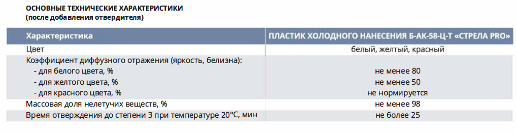 Как и все холодные пластики линейки «Стрела», PRO-версия наносится толстым слоем (от 1,5 мм и выше). Разметка служит в 3–5 раз дольше обычной краски, выдерживая интенсивное движение, реагенты и перепады температур.